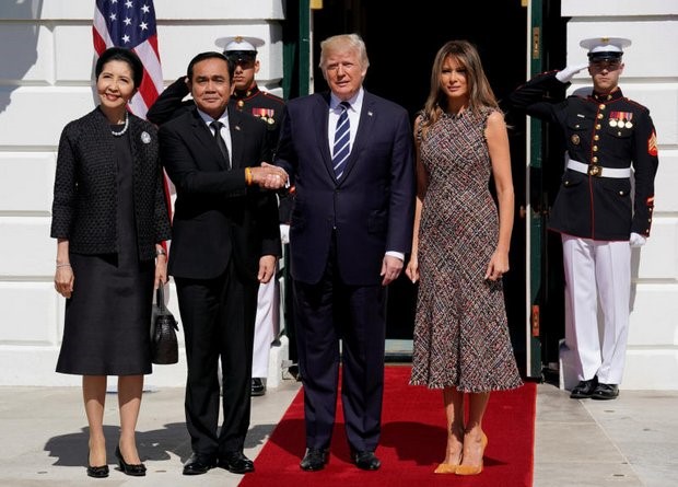 Il Primo Ministro thailandese Prayut ricevuto alla Casa Bianca da Donald Trump nell’ottobre 2017 (Immagine: Bangkok Post).